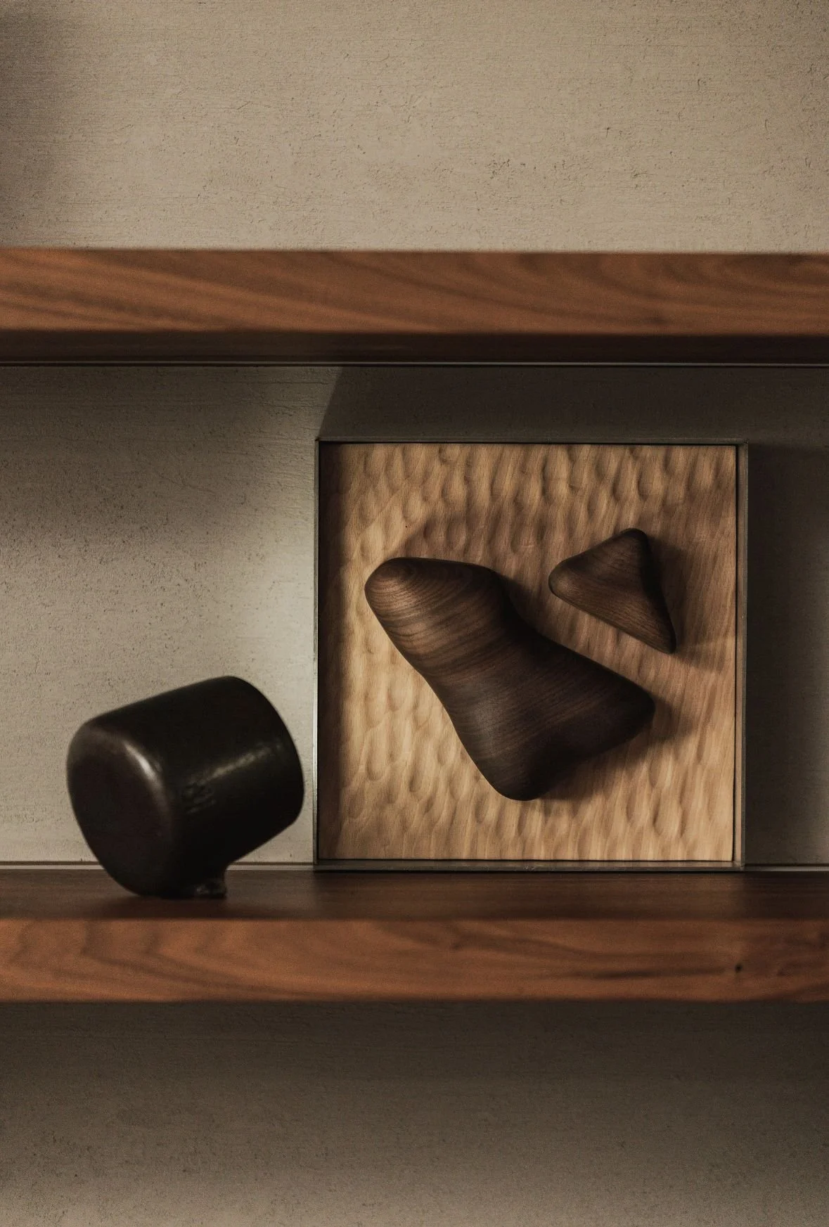 ECHO no 13 Wall SculptureBirch, Walnut & Oil Steel FrameH 30 x W 30 cm For more info:info@camilledepretre.com